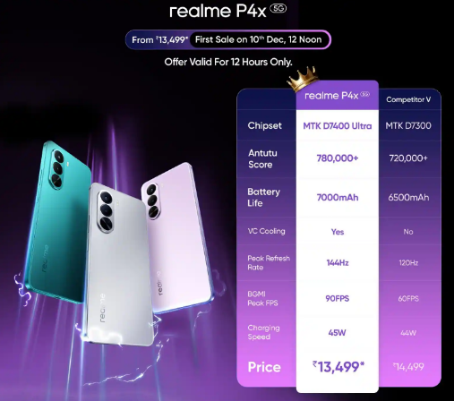 - Realme P4x 5G: ಭಾರತದಲ್ಲಿ ಬೆಲೆ ನಿಗದಿ